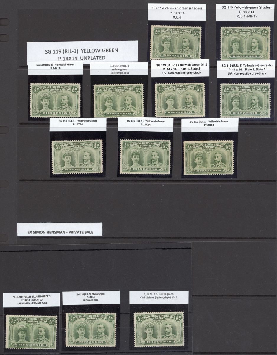 ½d. yellow-green and ½d. bluish green, a mainly unplated group on a Hagner page (12) but including plate 1, State 2 (2) and ½d. bluish green (3); generally fine and fresh. S.G. 119 and 120, £330