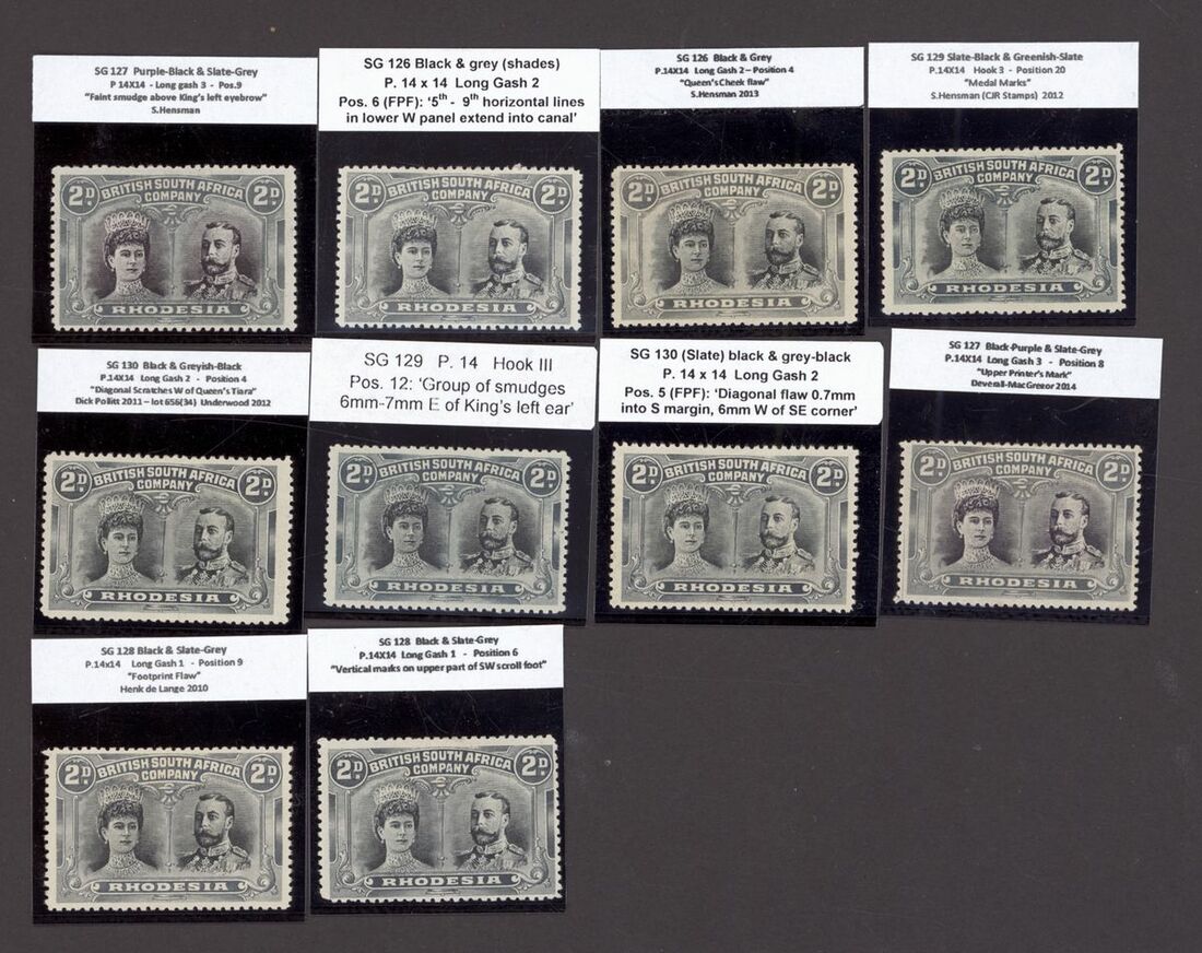 2d. mint group (10) of plated examples comprising black and grey (2), purple-black and slate-grey (2), black and slate-grey (2), slate black and greenish slate (2) and slate black and grey-black; fine mint. S.G. 127-130 group, £950+