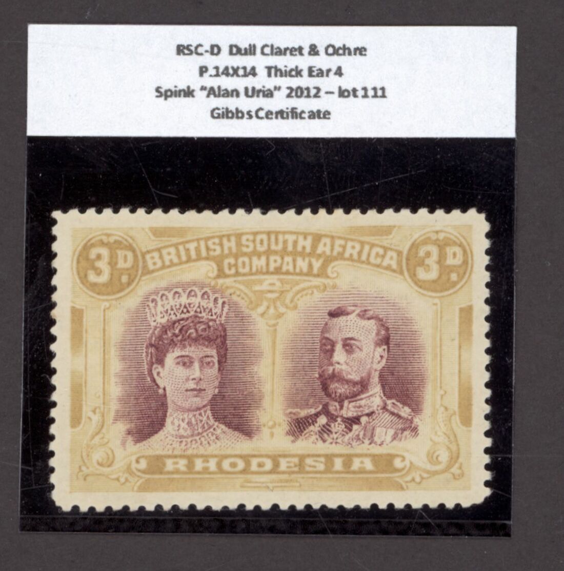 3d. dull claret and ochre, thick ear headplate, [37], large part original gum; fine. Gibbs Certificate (2013). RSC D