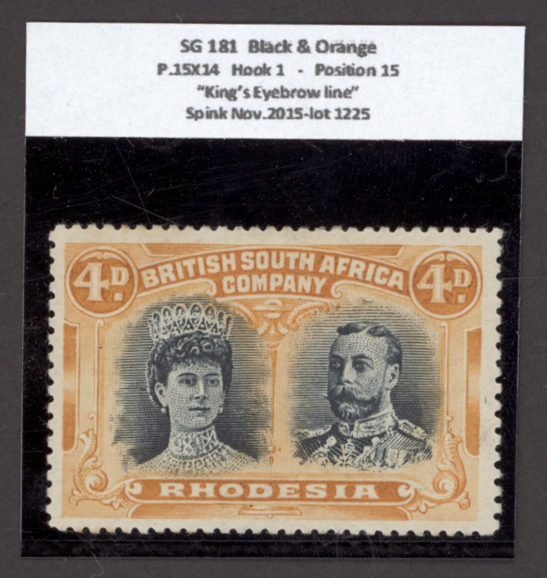 4d. black and orange, hook headplate, [15] showing King's eyebrow line, large part original gum; fine. S.G. 181