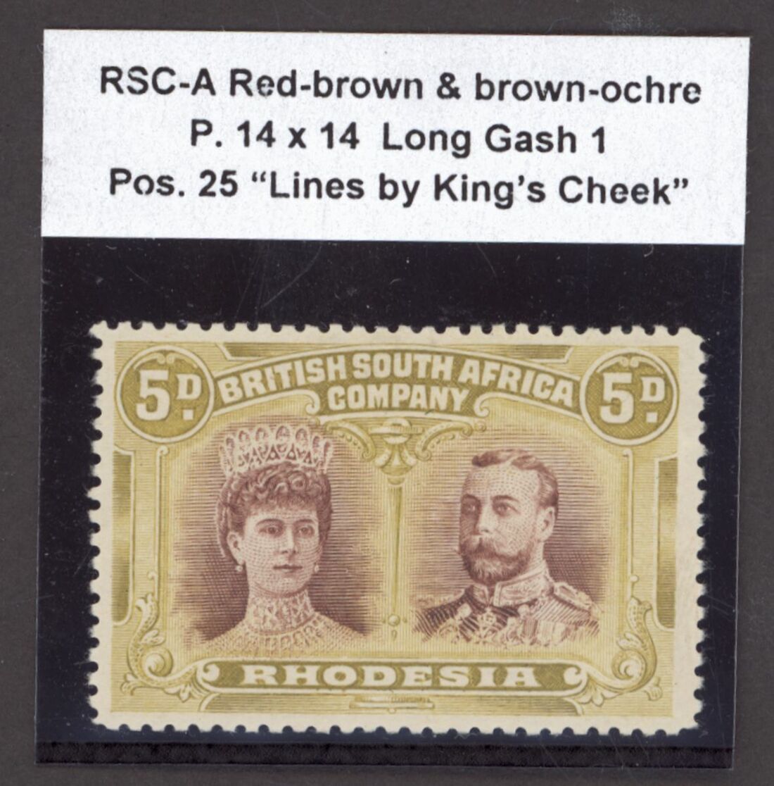 5d. red-brown and brown ochre, long gash headplate, [25] showing lines by King's cheek, large part original gum; fine. RSC A