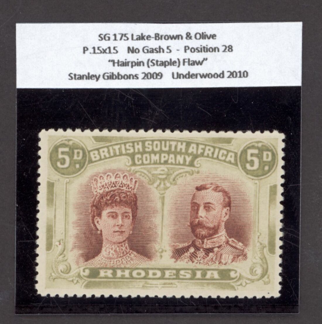 5d. lake-brown and yellow-olive, no gash headplate, [28] showing hairpin flaw, fine mint. S.G. 175, £750