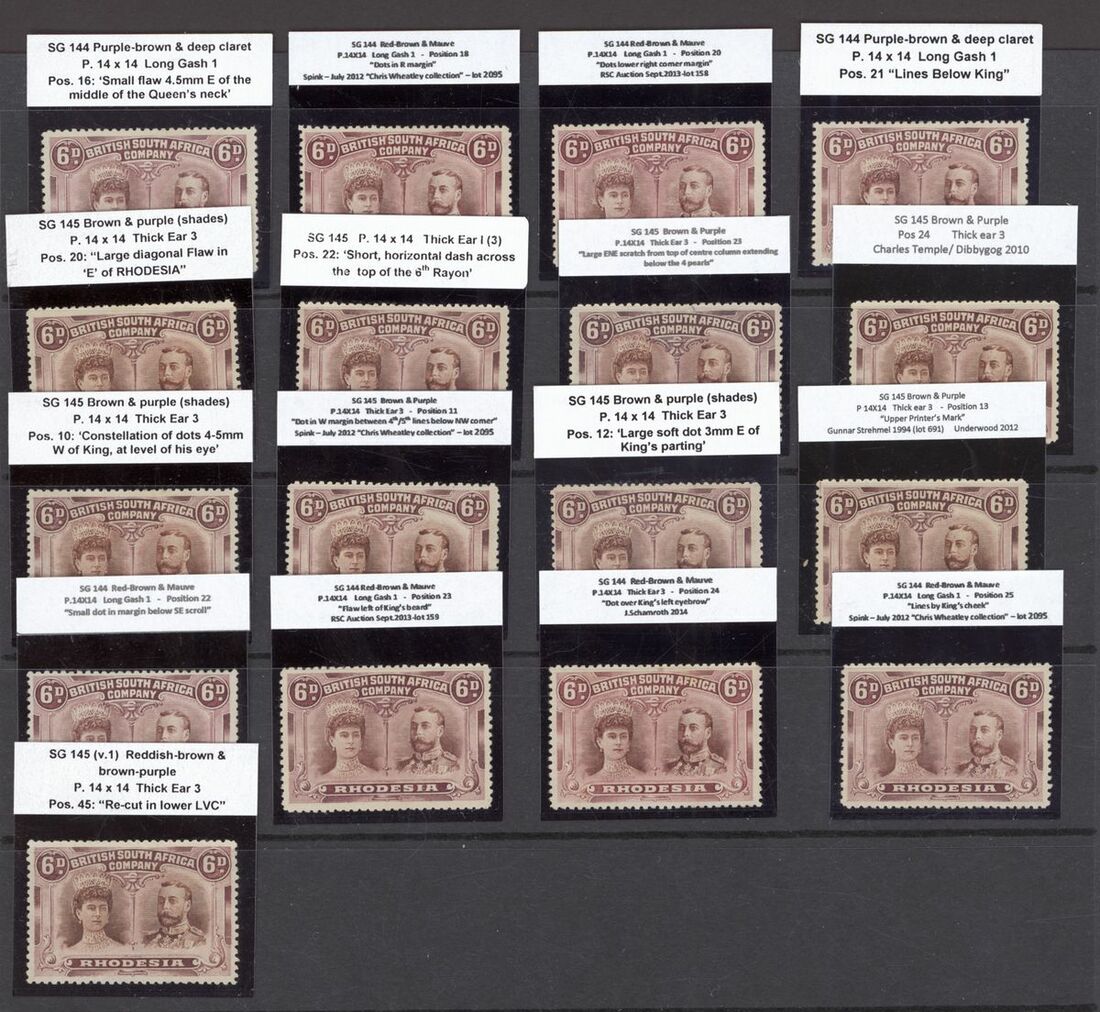 A mint group on a Hagner page (17) comprising red-brown and mauve (8, shades and including [21], [23] and [25]), brown and purple (8, shades and including [13], [20] and [24]) and reddish-brown and brown-purple (S.G. 145 v.1); good to fine mint. S.G. 144-145 group