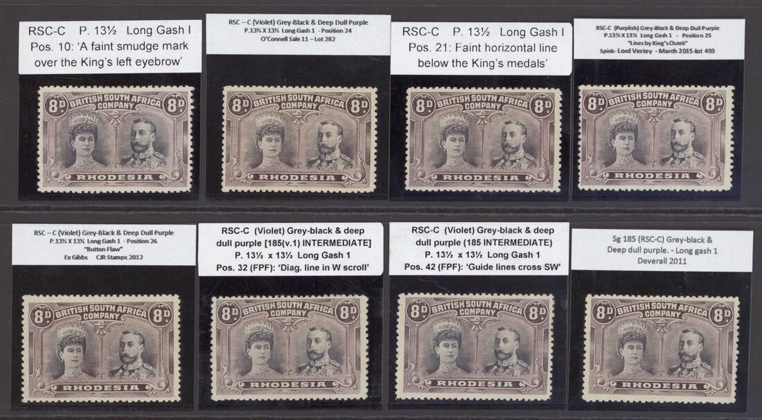 8d. grey black and deep dull purple, long gash headplate, a mint group (8) including [10], [21], [24], [25] and [26]; good to fine mint. S.G. 185 group, RSC C