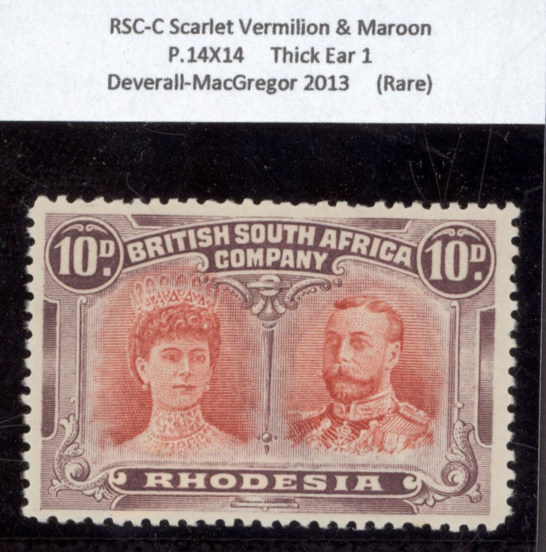 10d. scarlet vermilion and purplish maroon, thick ear headplate, large part original gum; fine and scarce. RSC C
