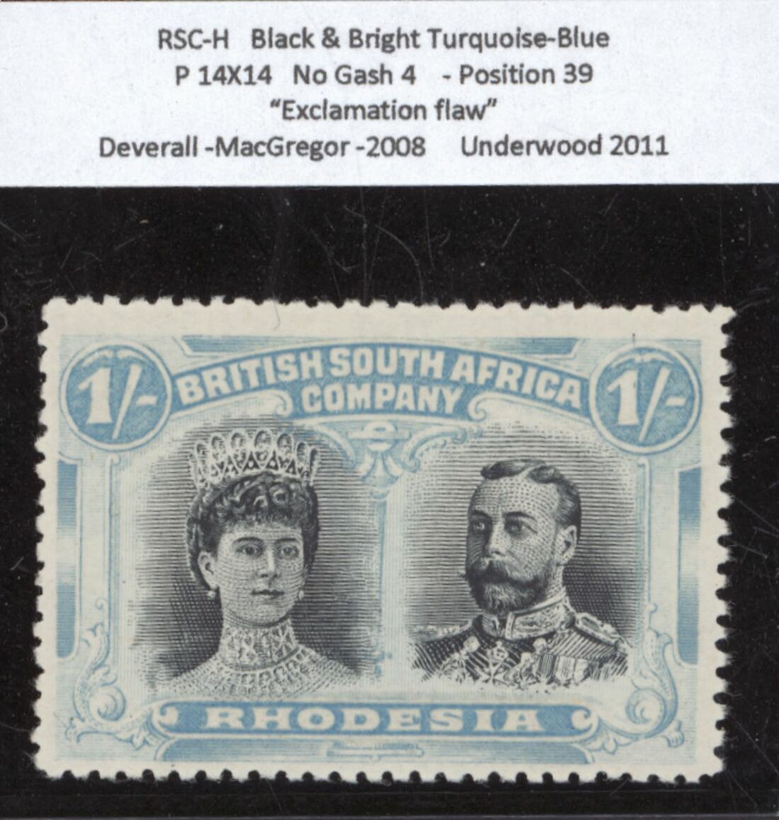 1/- black and bright turquoise-blue, no gash headplate, [39], very lightly mounted mint; fine. RSC H