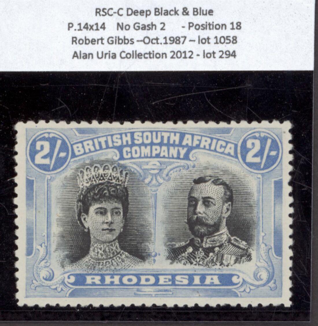 2/- deep black and blue, no gash headplate, [18], large part original gum; fine. RSC C