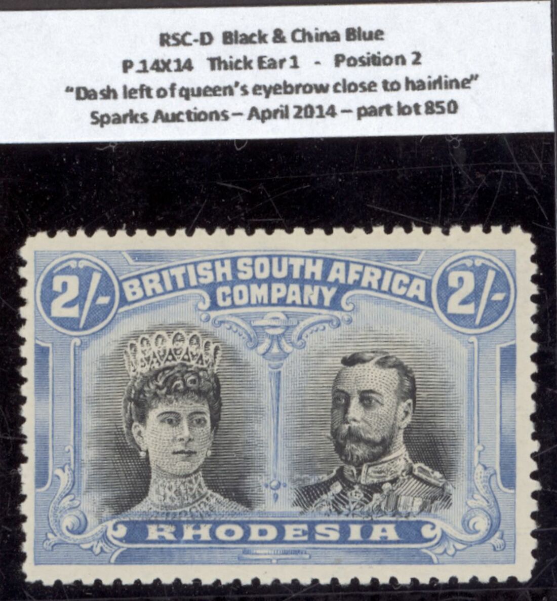 2/- black and china blue, thick ear headplate, [2], lightly mounted mint; fine. RSC D