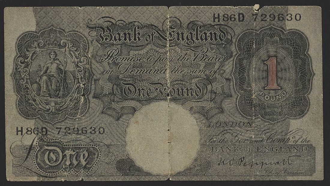 Axis Propaganda Note, £1, ND (1940-2), contemporary pseudo banknote with the serial number H86D 729630 and the signature of K. O. Peppiatt