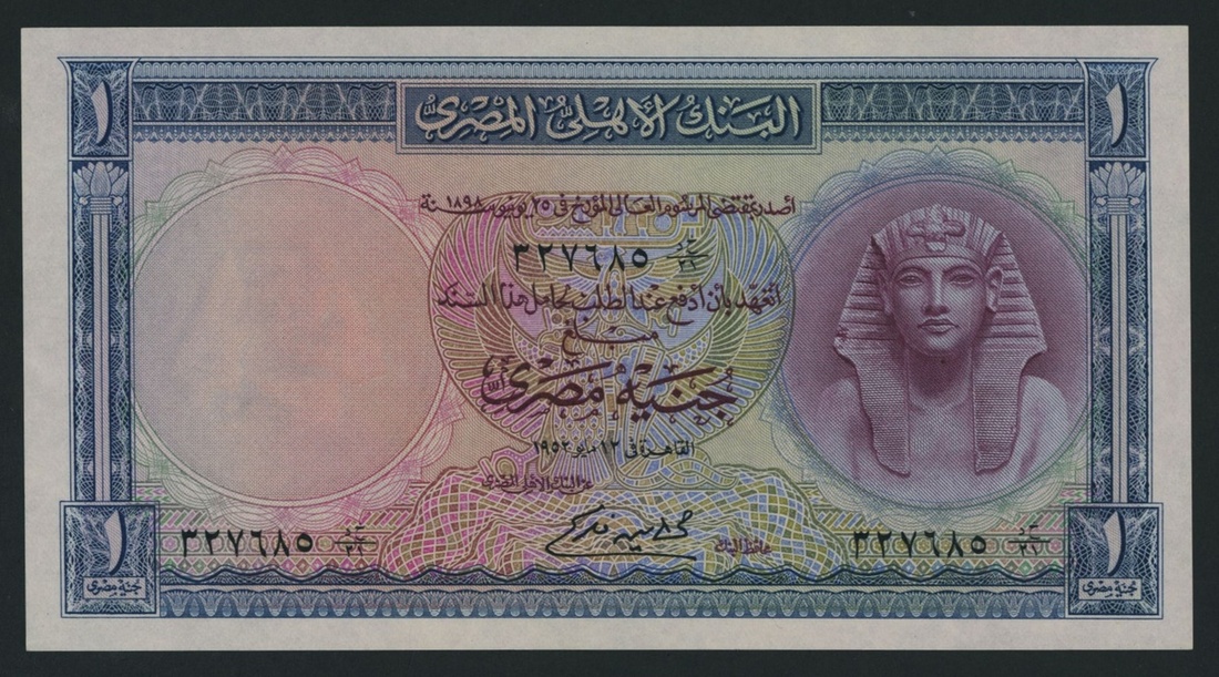 (x) National Bank of Egypt, 1 Egyptian Pound, 12th May 1952, serial number 327685 HG/21, First sufix and first date of the type,