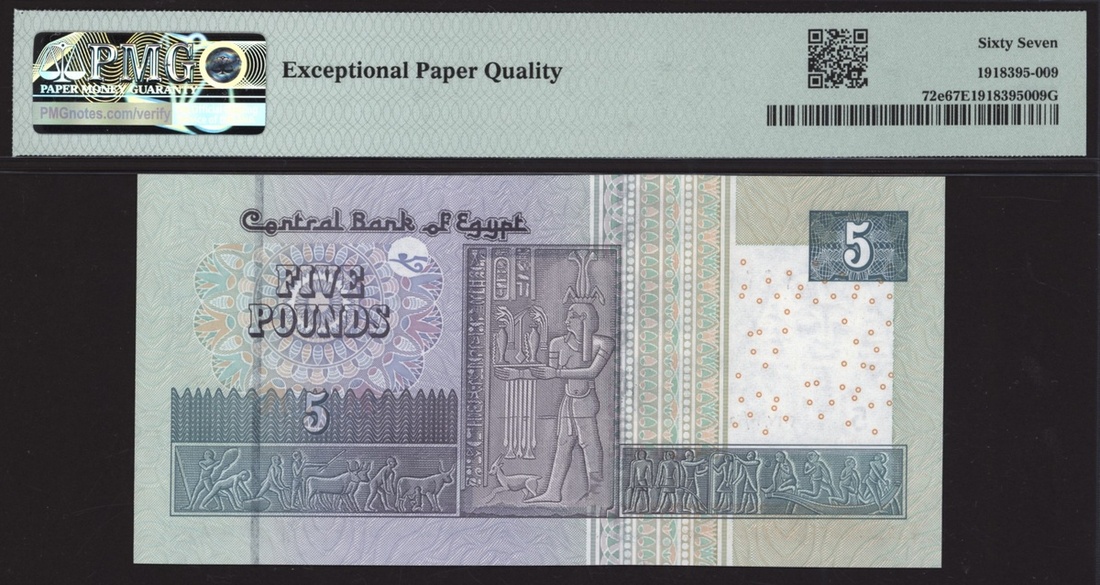 (x) Central Bank, Egypt, [Top Pop] £5, 25th October 2017, serial number 409/V 2222222, (Pick 72e, BNB 336 for the type), in PMG holder 67 EPQ Superb Gem Uncirculated, solid 2´s serial number