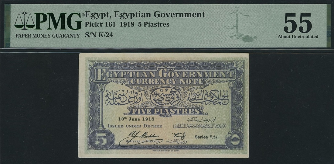 (x) Egyptian Government, 5 Piastres, 10th June 1918, serial number K/24,