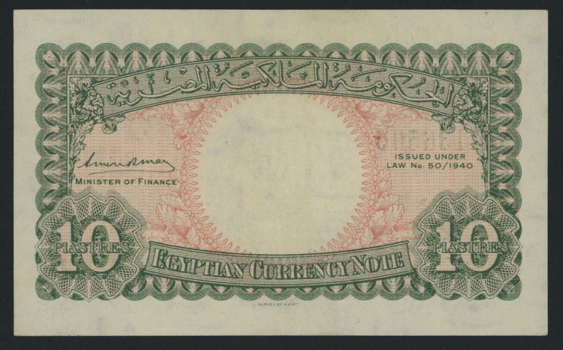 (x) Egyptian Government Currency note, 10 Piastres, 1940, serial number Q/2 136509, (Pick 167b, BNB 211c), good extremely fine