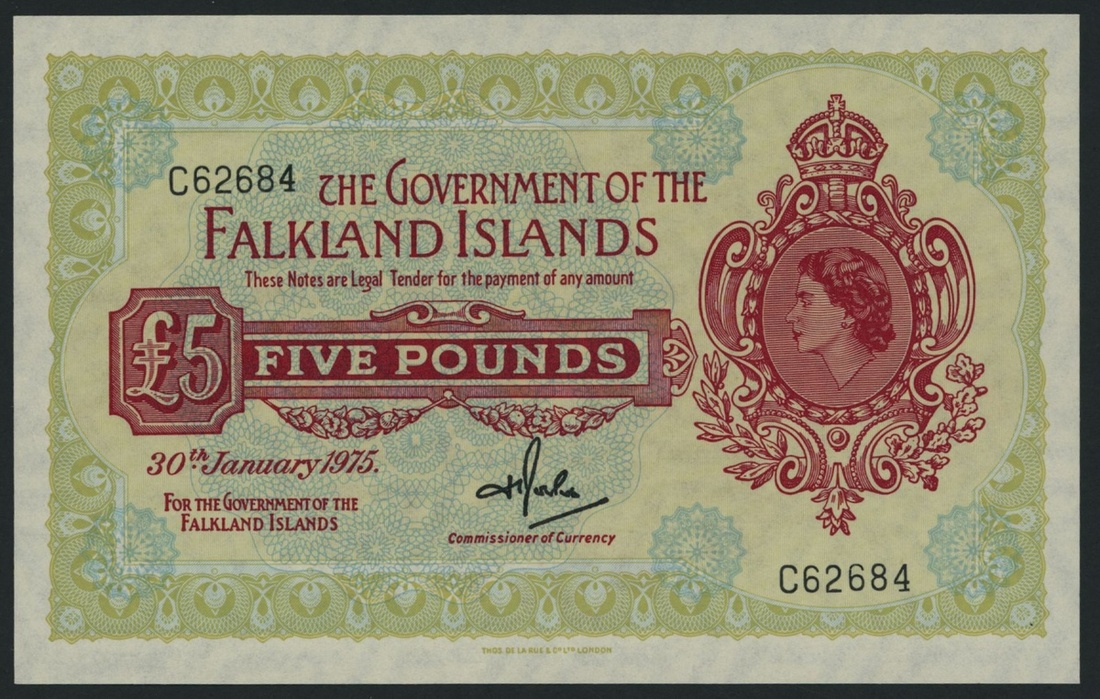 (x) Government of the Falkland Islands, £5, 30th January 1975, serial number C62684, (Pick 9b, BNB 214b), slight counting crease, otherwise uncirculated