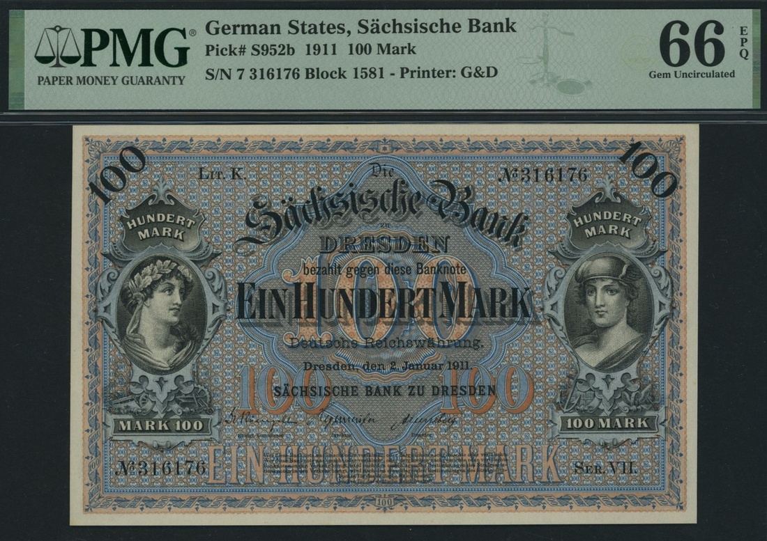 100 Mark, Dresden, 2 January 1911, serial number 7 316176 Block 1581,
