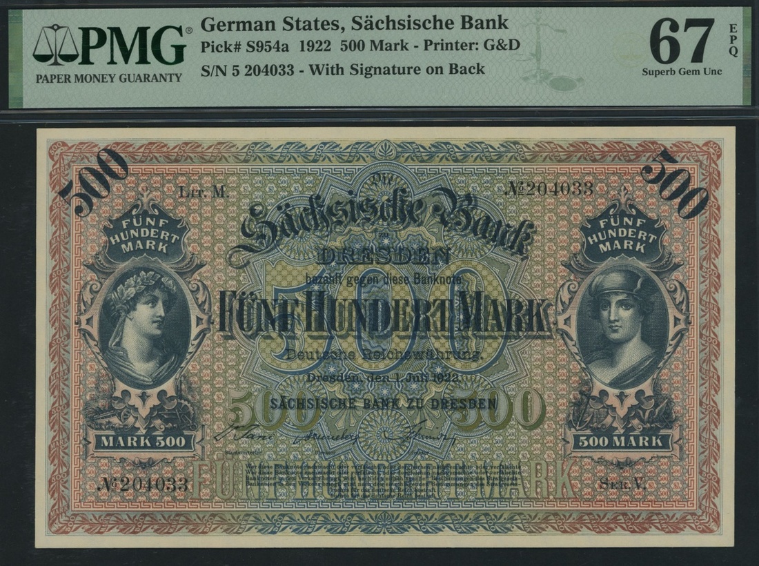 [Top Pop] 500 Mark, Dresden, 1 July 1922, serial number 5 204033;