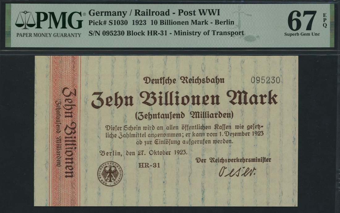 [Top Pop] 10 Billion Mark, Berlin, 27 October 1923, serial number 095230 Block HR-31
