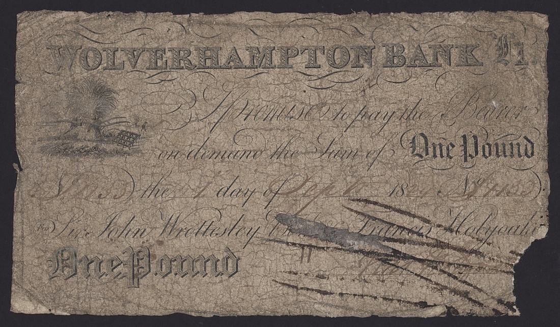 Wolverhampton Bank, £1, 1st September 1824, serial number 1153?, (Outing 2395b), fine, ink cancelled, scarce