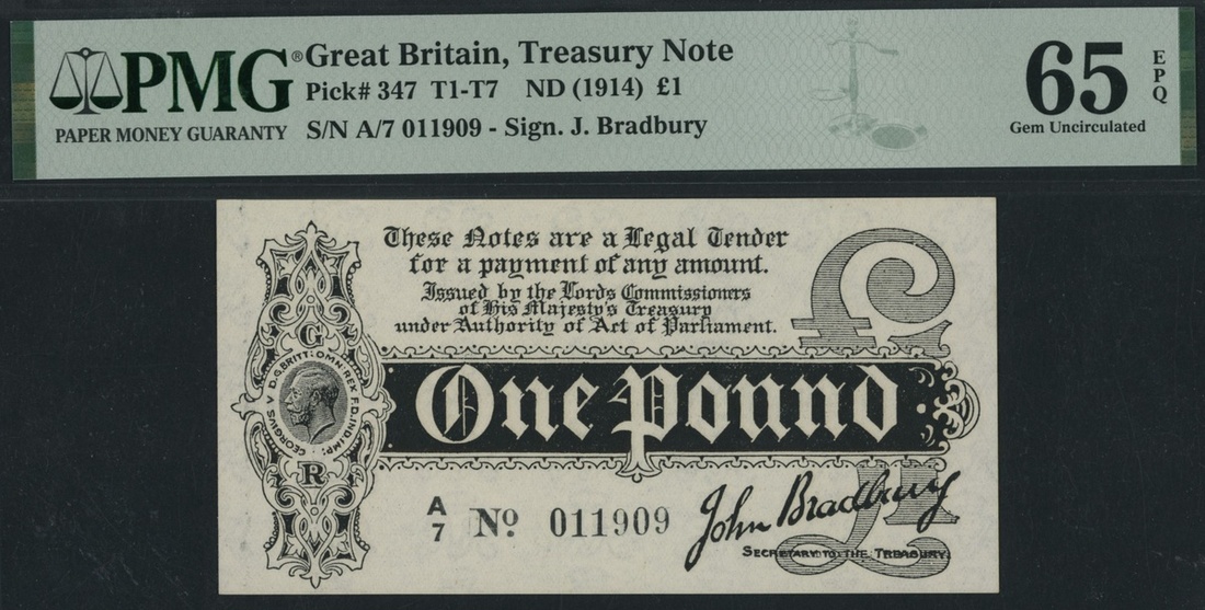 Treasury Note, Great Britain, £1, ND (1914), serial number A/7 011909, (Pick 347, T3), in PMG holder 65 EPQ Gem Uncirculated
