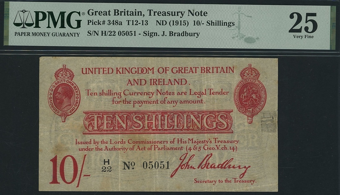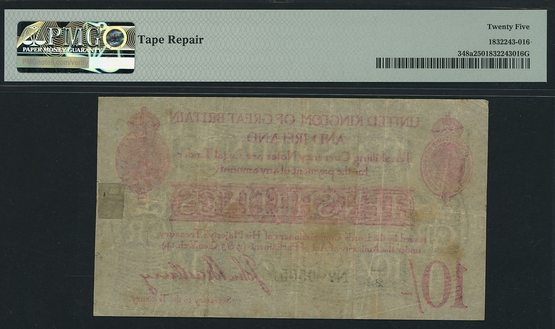 (x) Treasury Note, Great Britain, 10 Shillings, ND (1915), serial number H/22 05051, (EPM T 12, Pick 348a), in PMG holder 25 Very Fine, tape repair