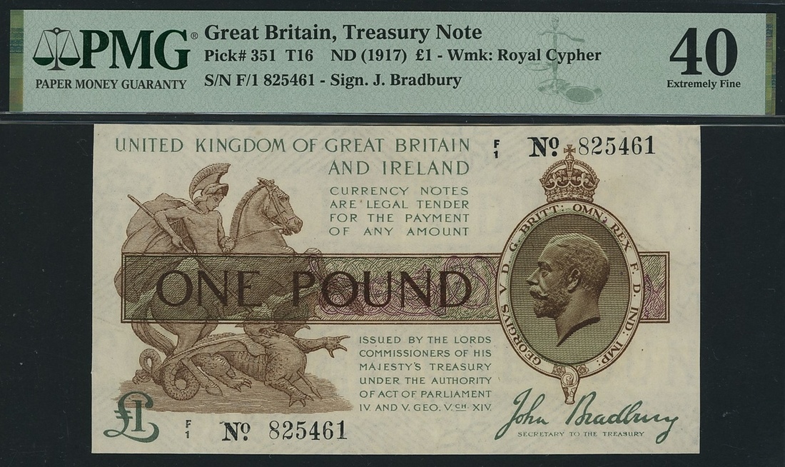 (x) Treasury Note, Great Britain, £1, ND (1917), serial number F/1 825461, (EPM T 16, Pick 351), in PMG holder 40 Extremely Fine