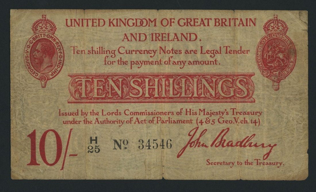 10 Shillings, ND (1915), serial number H/25 34546, Bradbury signature;
