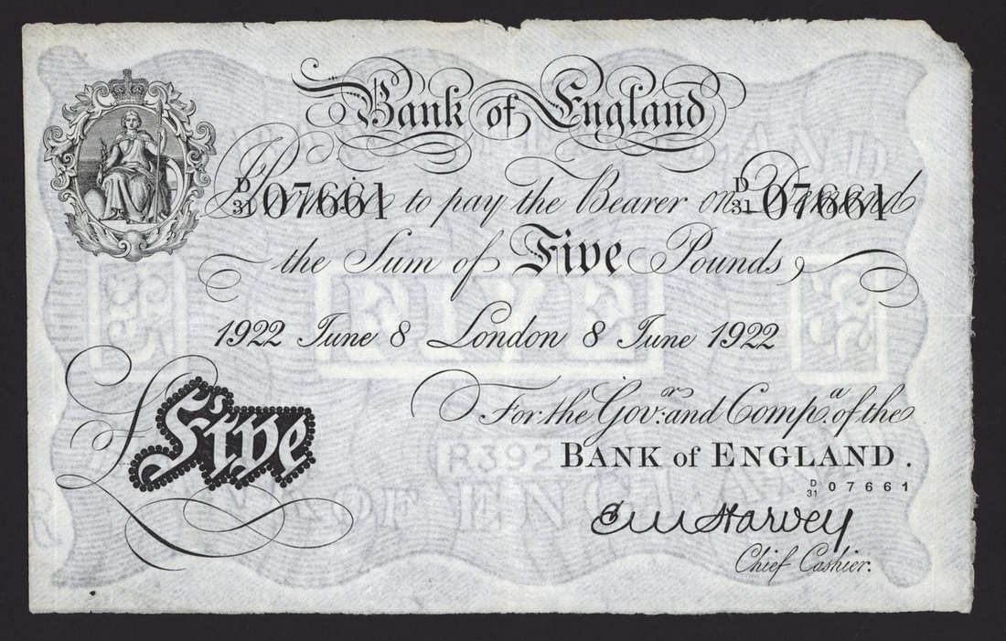 Bank of England, E. M. Harvey, £5, London, 8th June 1922, serial number D/31 07661, (EPM B209a), extremely fine, slight edge wear