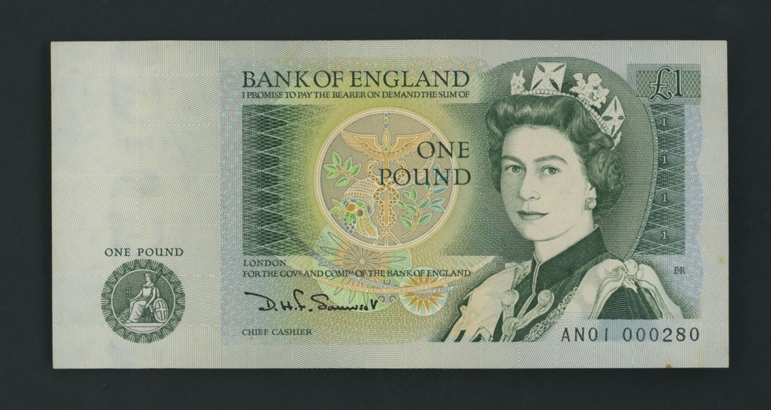 Bank of England, D. H. F Somerset signature, [FIRST RUN] £1, ND (1981), serial number AN 01 000280, (Pick 377b, EPM B341), uncirculated, handling creases and slight stains