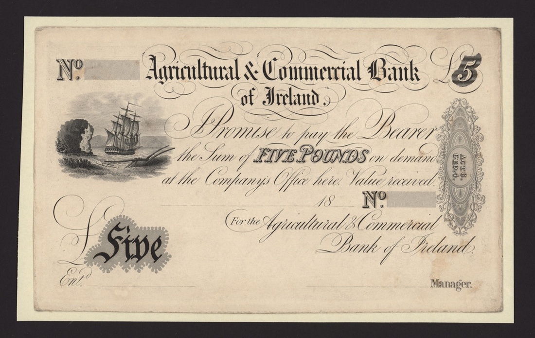 Agricultural and Commercial Bank of Ireland, proof £5, no branch, undated,