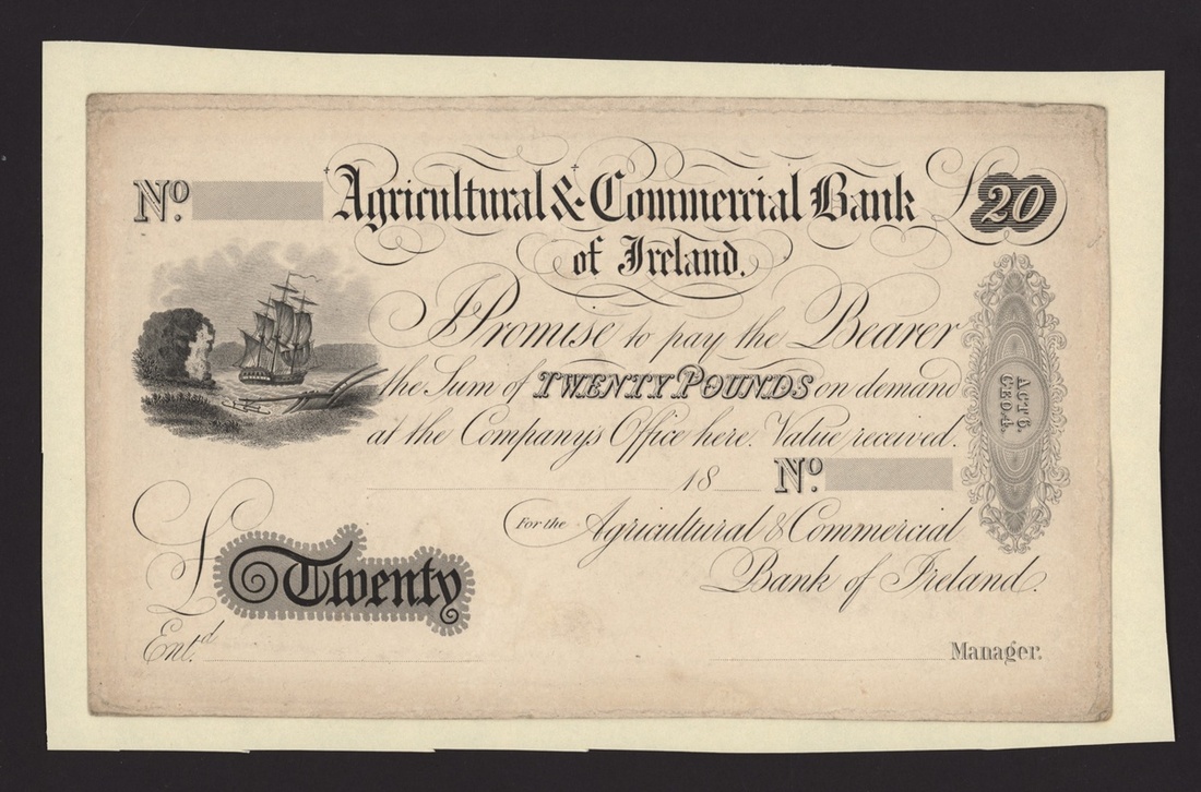 Agricultural and Commercial Bank of Ireland, proof £20, no branch, undated,