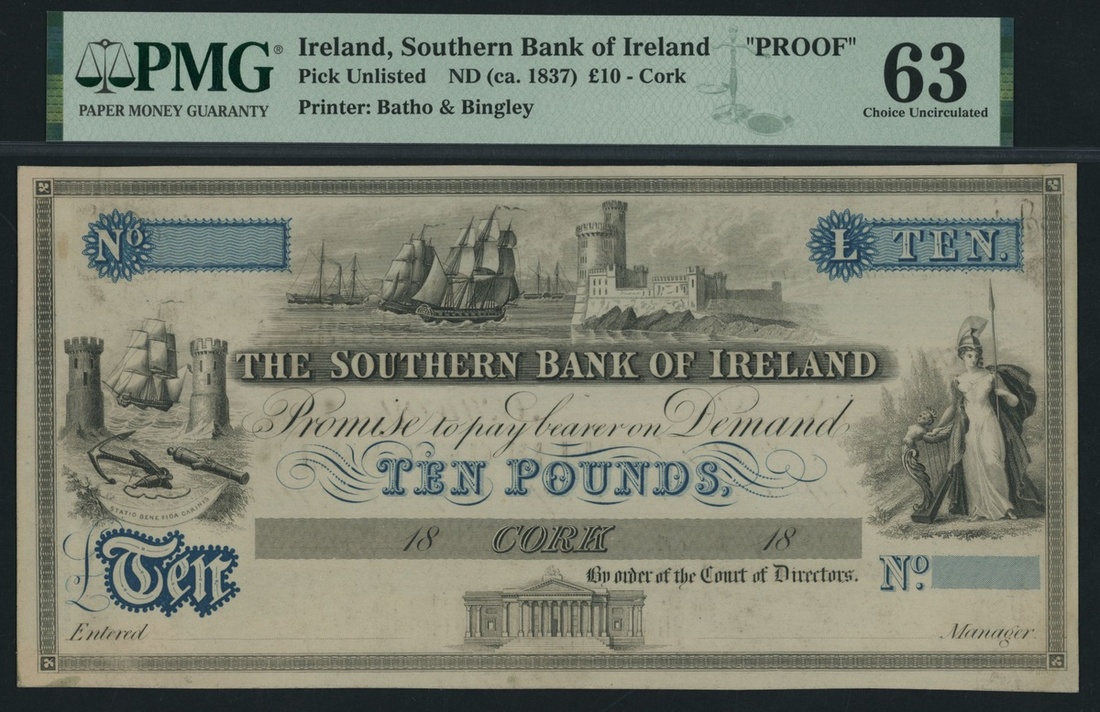 Southern Bank of Ireland, [Top Pop] proof £10, Cork, ND (ca. 1837),