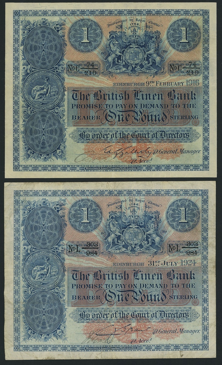 (x) British Linen Bank, [5 notes] £1, Edinburgh,