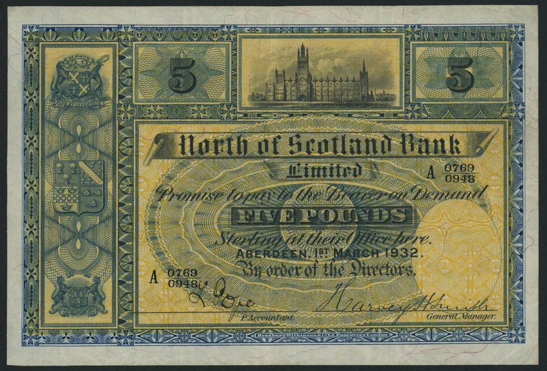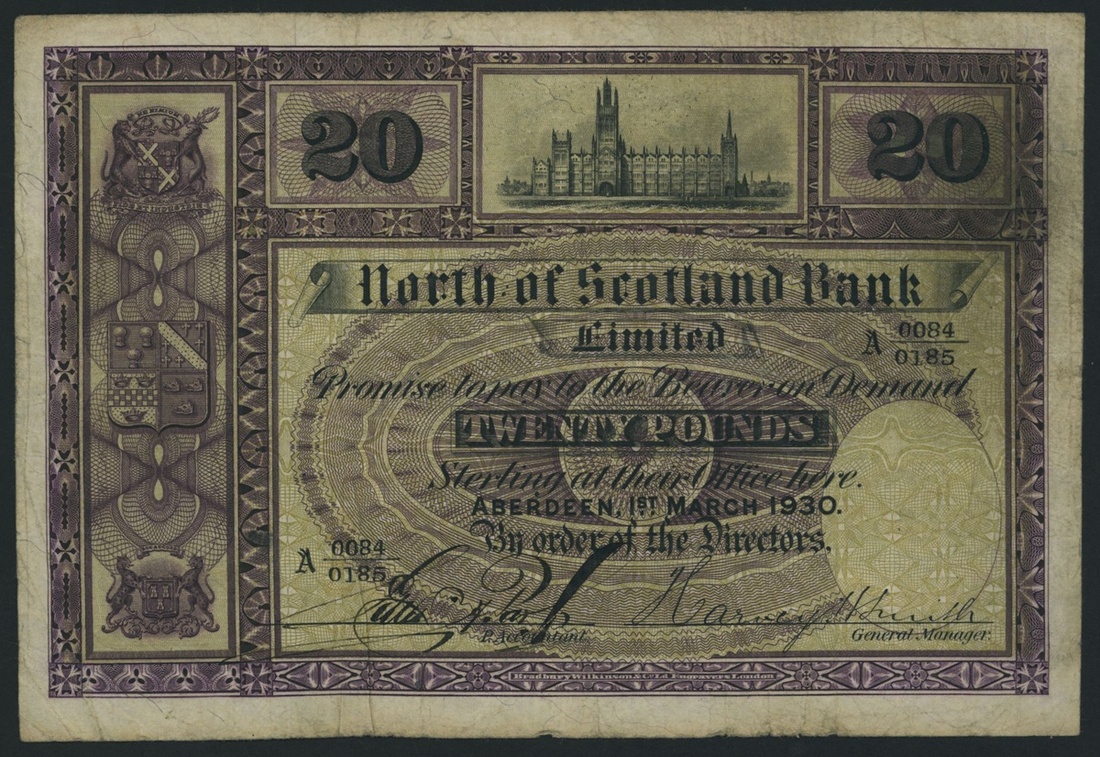 North of Scotland Bank, [2 notes] £5, £20, Aberdeen, 1930-2,