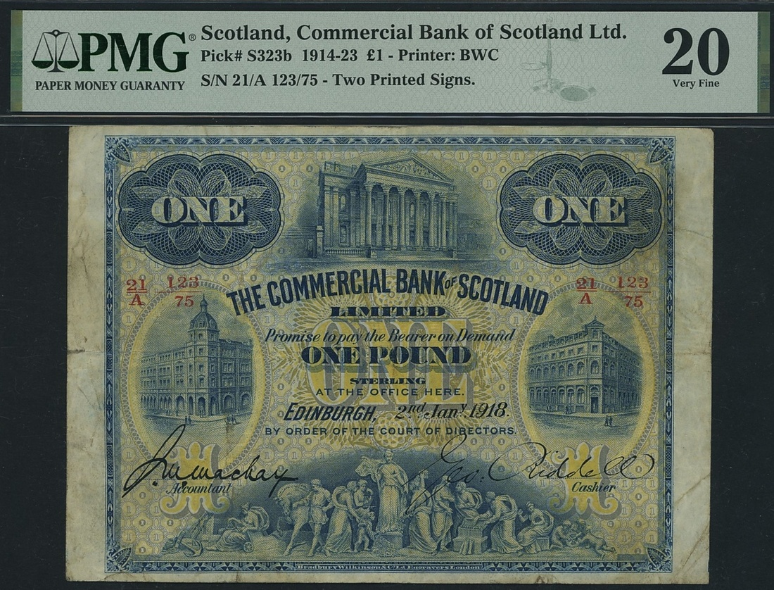(x) Commercial Bank of Scotland Ltd., £1, Edinburgh, 2nd January 1918, serial number 21/A 123/75, (PMS CO56e, Pick S323b), in PMG holder 20 Very Fine