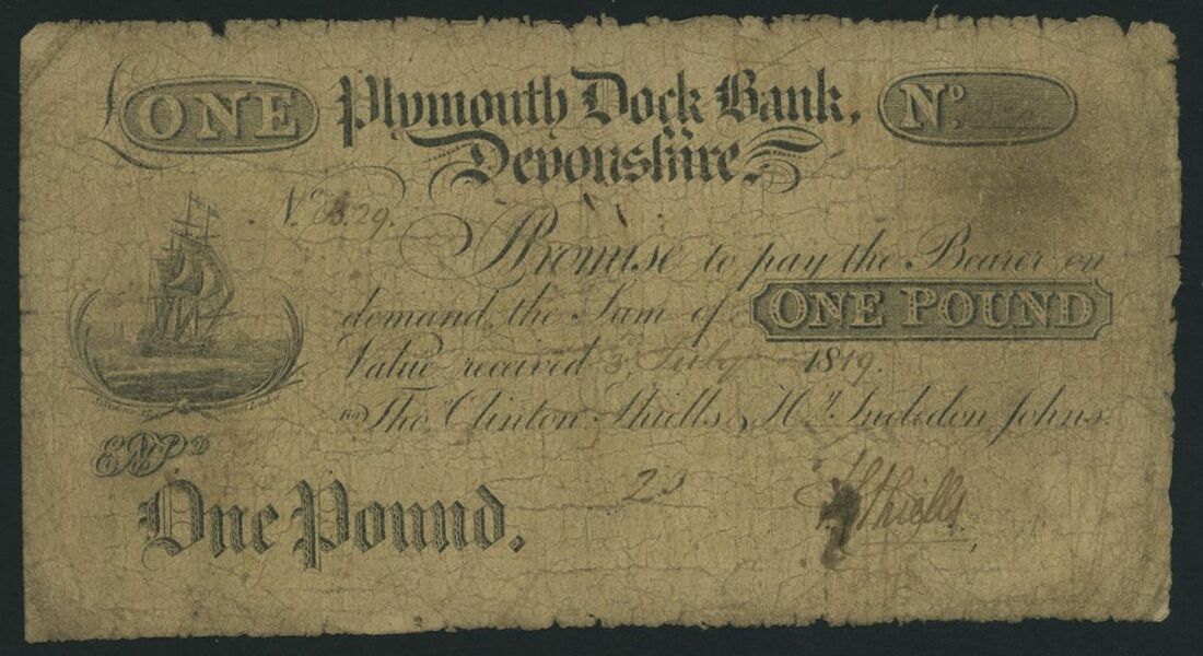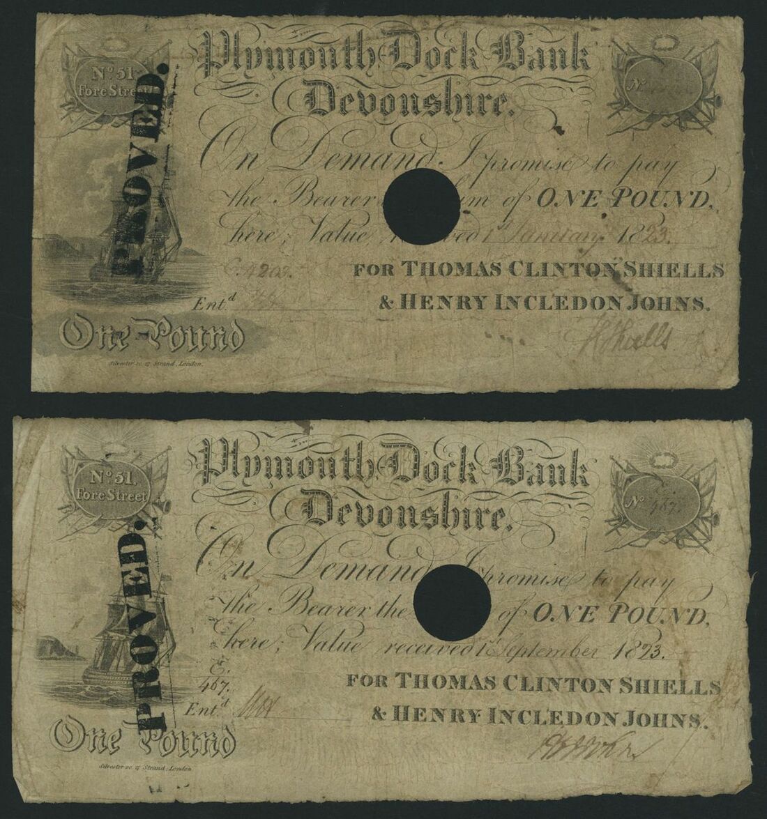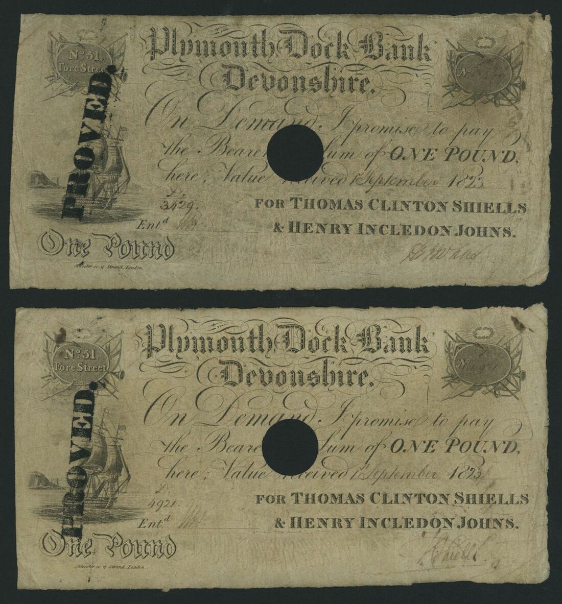 Plymouth Dock Bank, Devonshire, [5 notes] £1, 1819-23,