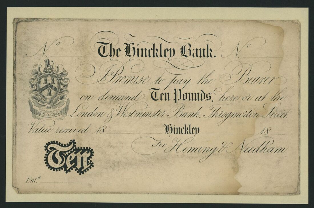 Hinckley Bank, proof £10, Hinckley, dated 18--, uniface,