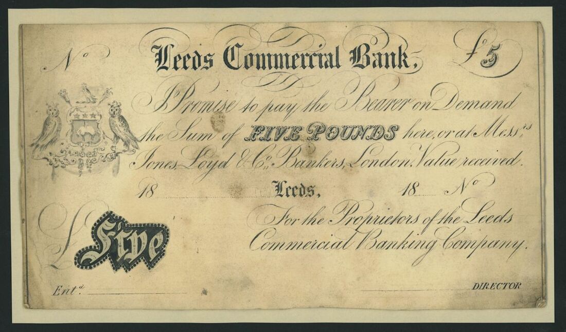 Leeds Commercial Bank, proof £5, Leeds, dated 18--, Jones, Loyd & Co. mentioned in Outing 2719, circa. 1808-1864, uniface,
