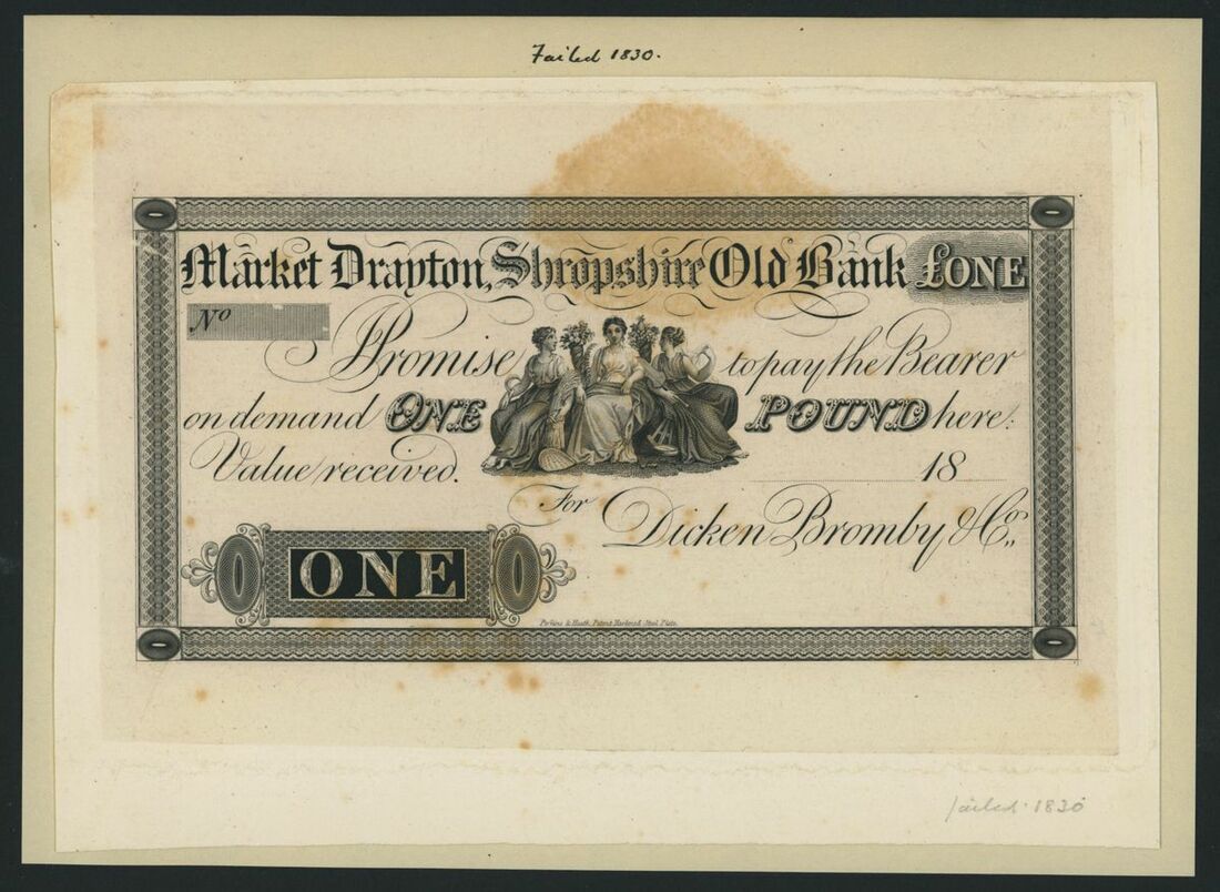 Market Drayton Shropshire Old Bank, proof £1, dated 18--, uniface,