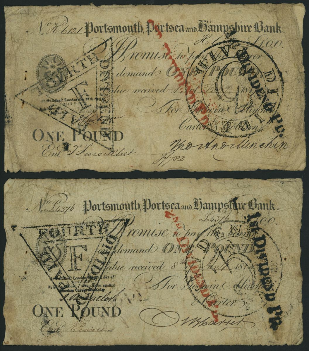 Portsmouth, Portsea and Hampshire Bank, [2 notes] £1, 1817-8,