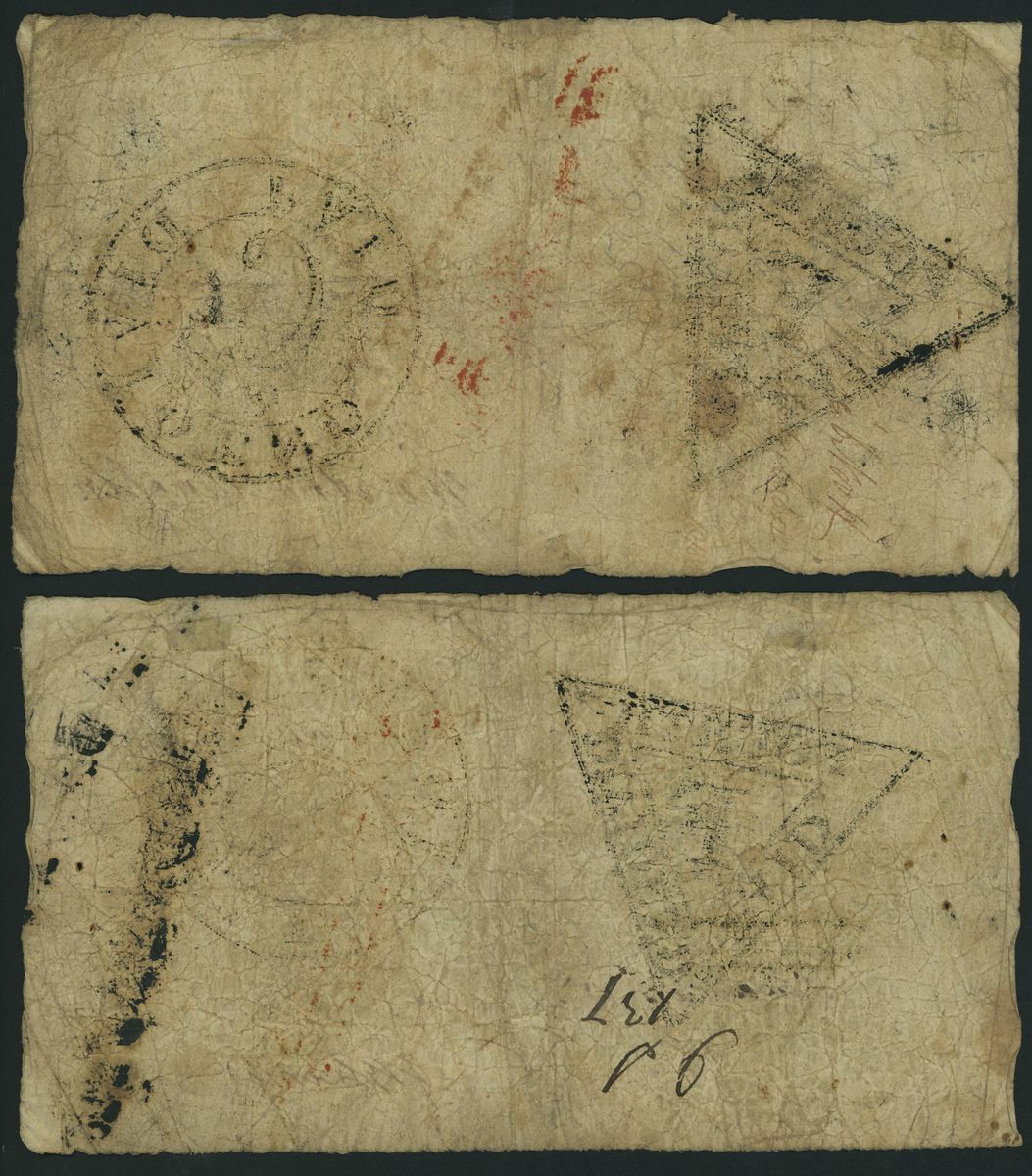 (Outing 1742b, 1742e), good, pinholes, rust, stains and edge wear (2 notes)