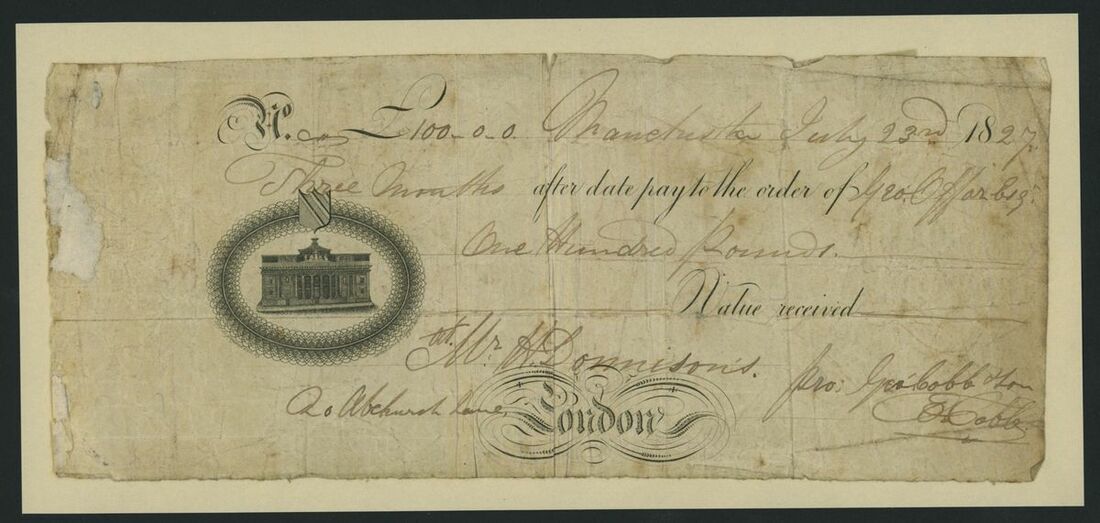 £100 cheque, Manchester(?), 23rd July 1827, cheque is uniface,