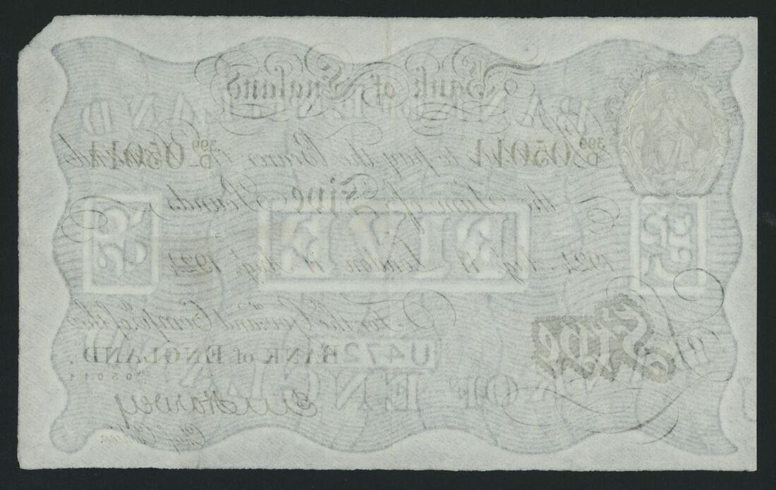 Bank of England, E. M. Harvey, £5, London, 11th August 1924, serial number 399/D 05011, (EPM B209a), top right corner missing, otherwise very fine