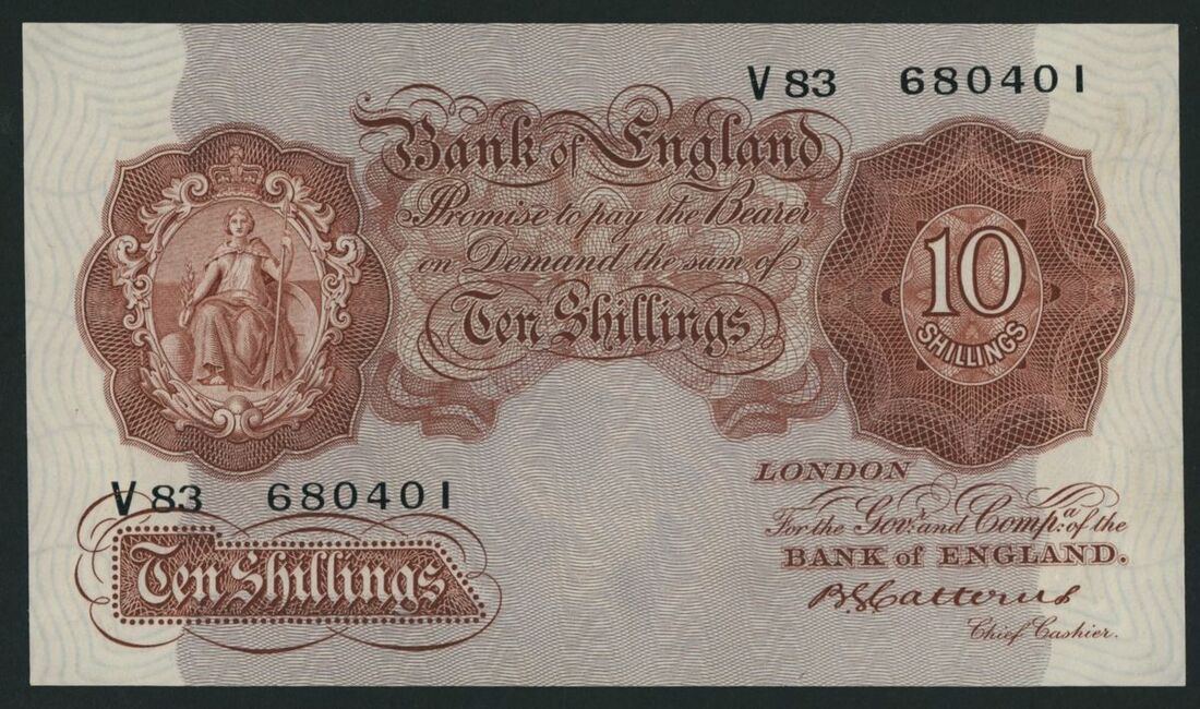 Bank of England, Catterns signature, [FIRST SERIES] 10 Shillings, ND (1930), serial number V83 680401, (EPM B223), about uncirculated