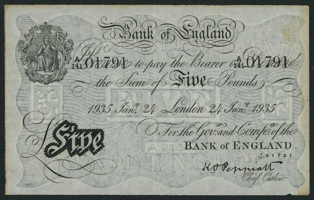 Bank of England, Operation Bernhard, £5, London, 24th January 1935, serial number A/141 01791, (EPM B241*), good fine