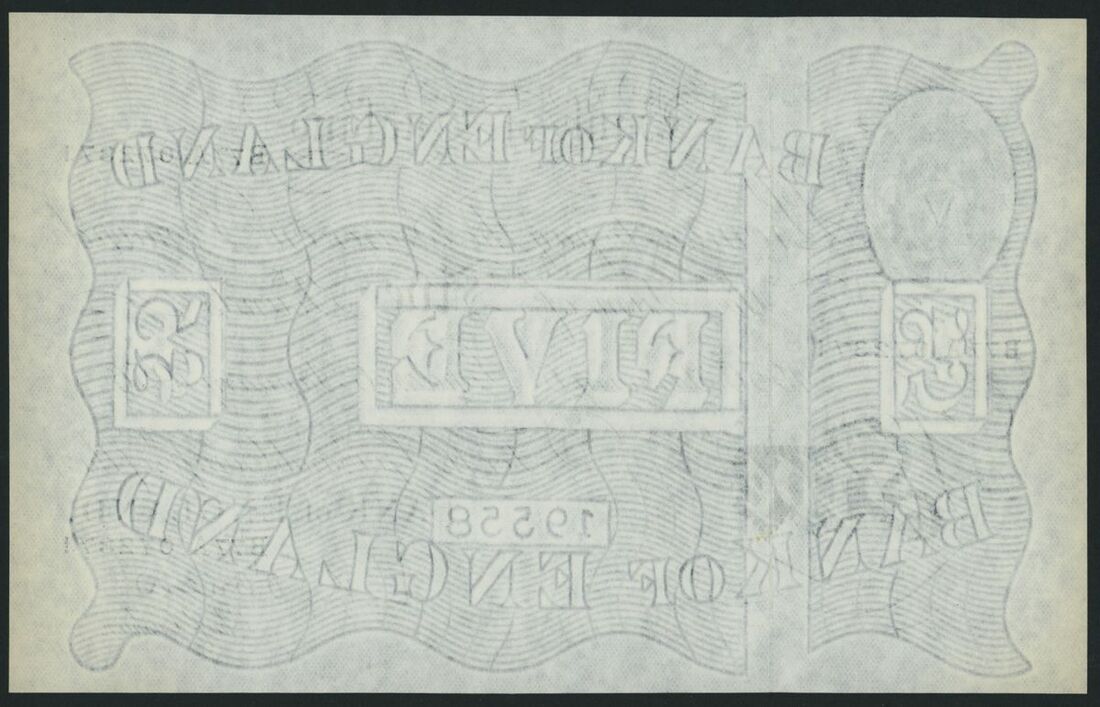 Bank of England, L. K. O'Brien, £5, London, 6th January 1956, serial number B77A 072371, (EPM B276), about uncirculated, discoloured