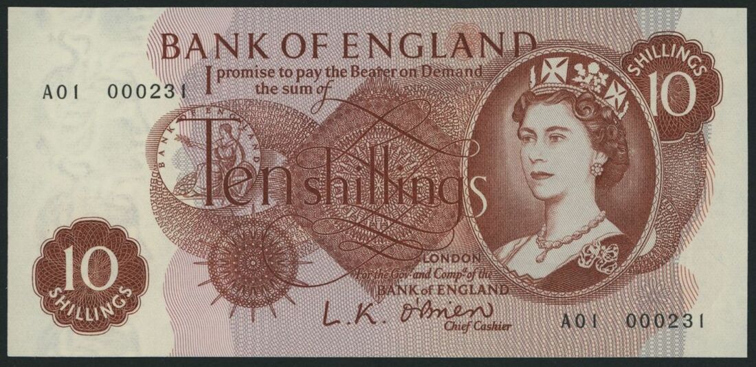 Bank of England, O'Brien signature, [FIRST RUN] 10 Shillings, ND (1961), low serial number A01 000231, (EPM B286), uncirculated, a lovely low serial number
