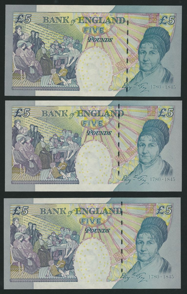 £5 (4), including (2) [FIRST RUN] prefix JB46 and [FIRST RUN] prefix LE46;
