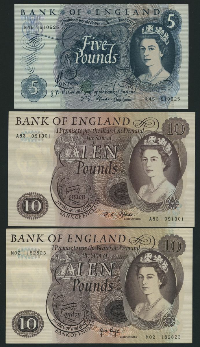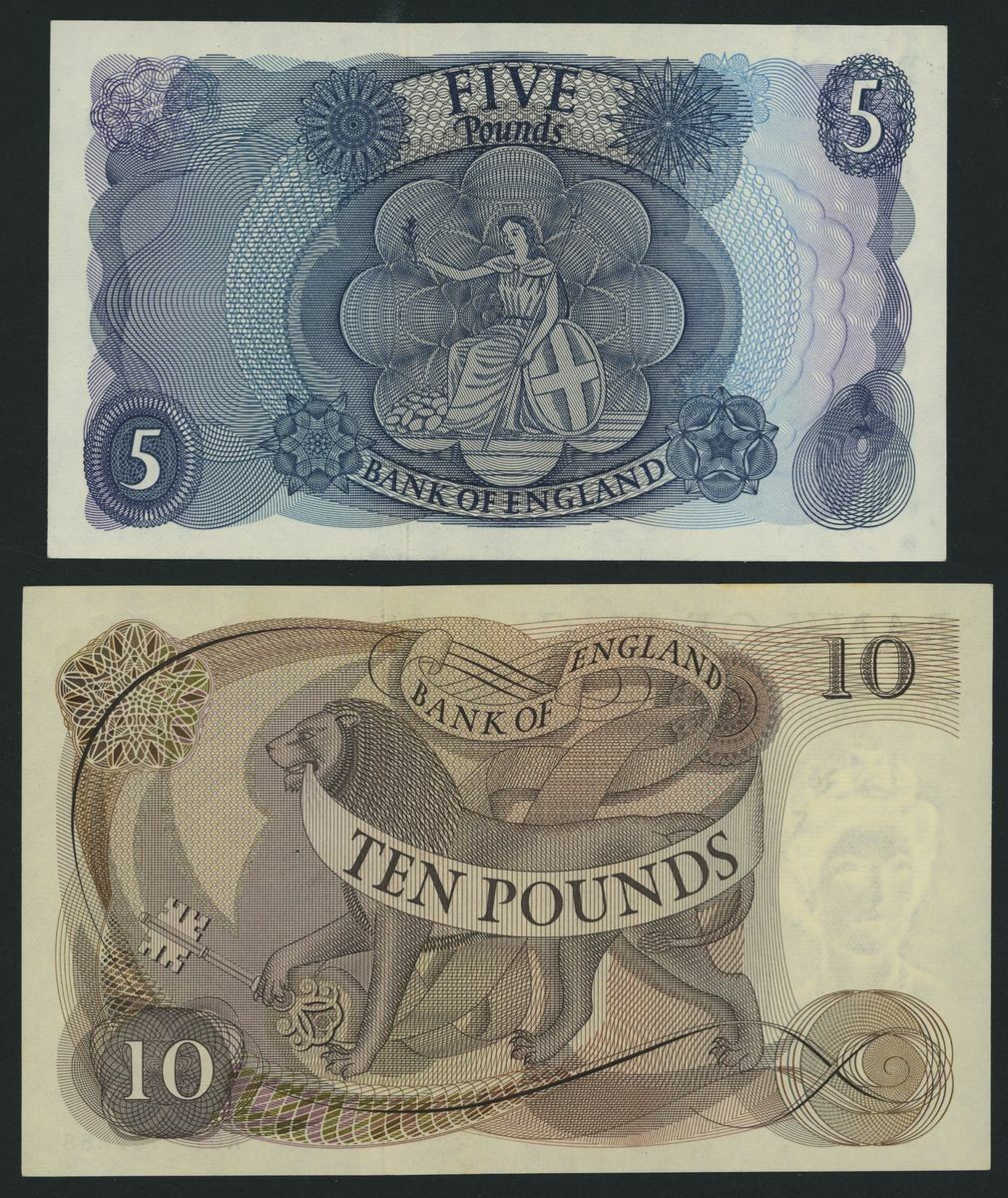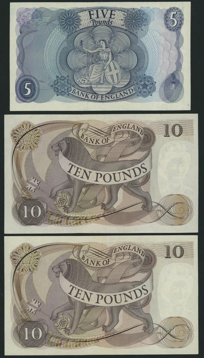 Bank of England, [5 notes] £5, £10, 1963-71,