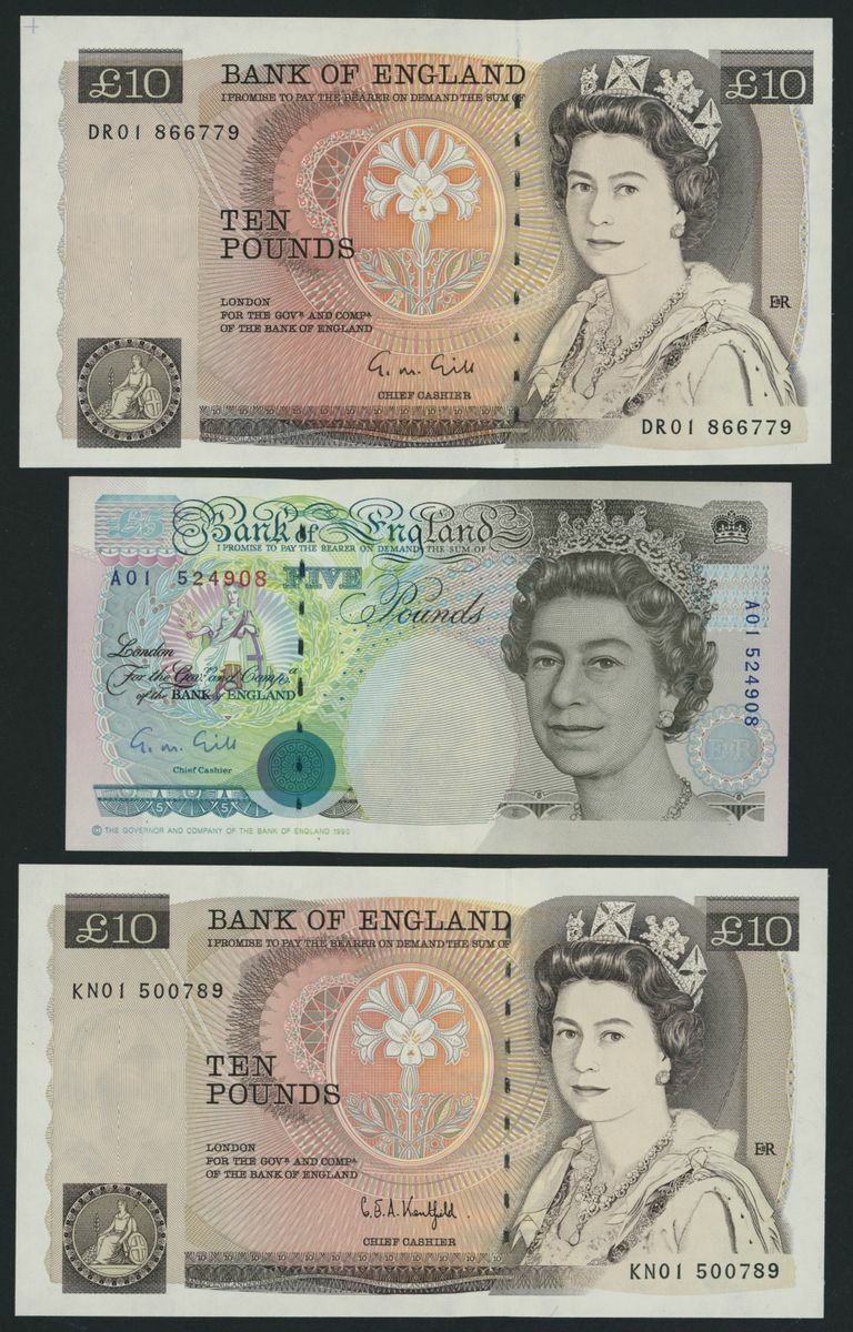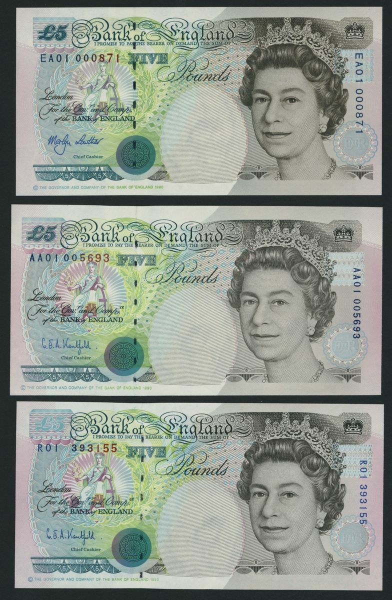 Bank of England, [7 notes] [FIRST AND LAST RUNS] £5, £10, 1988-99,