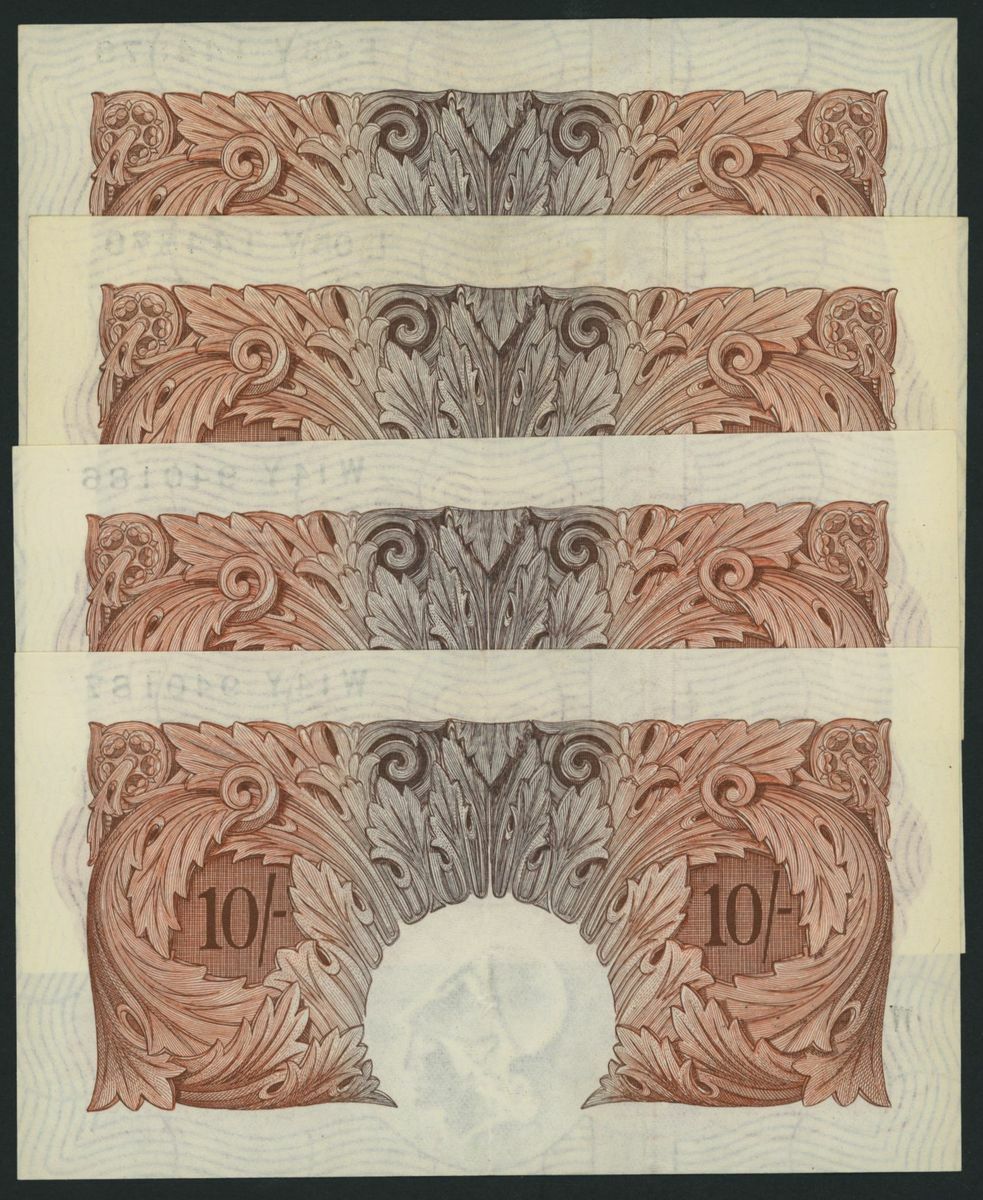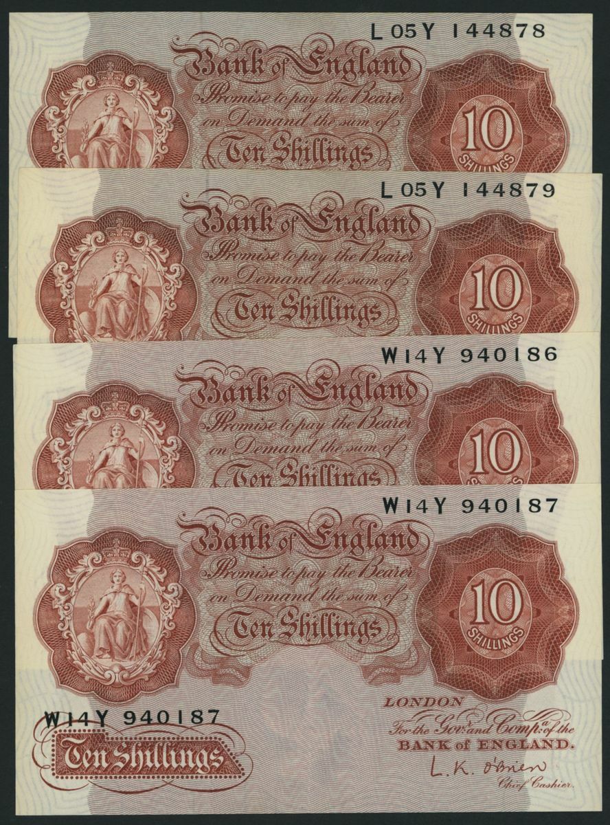 10 Shillings (4) ND (1955), 2 pairs of consecutive serial numbers W14Y 940186-7 and L05Y 144878-9;